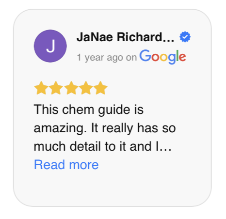 Covers Chem I, II and AP Chem